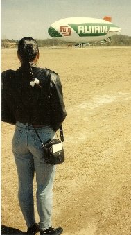 Elisa getting ready to pilot the Fuji Blimp while working for IBM